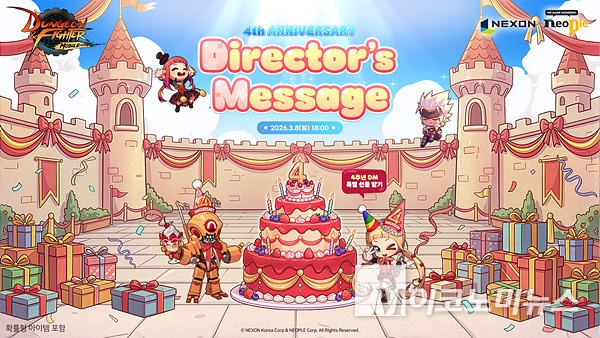 넥슨의 던전앤파이터 모바일이 이달 8일 열리는 4주년 기념행사 ‘DM(Director′s Message)’을 앞두고 이용자들의 관심이 고조되고 있다. 이번 DM은 옥성태 디렉터가 직접 상반기 개발 로드맵을 공개하는 자리로 예고되며, 최근 업데이트 방향성에 대한 유저들의 질문과 요구가 집중되는 상황이다. 옥성태 디렉터는 던전앤파이터 모바일의 총괄을 맡고 있다. 특히 지난달 적용된 신규 고난도 콘텐츠 ‘증명의 전장’은 도전적 설계와 보상 구조를 둘러싸고 다양한 평가가 이어지며, DM에서의 추가 설명과 개선안 제시 여부가 주목된다.