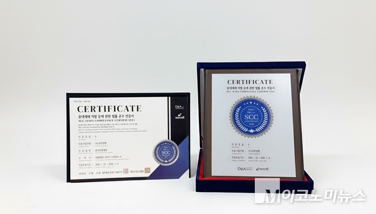 중대재해처벌법 준수 인증제(SAPA Compliance Certification, SCC)는 중대재해처벌법이 부여하고 있는 법적 의무 사항을 기업이 충실히 이행하고 있는지 법률 전문가와 안전 전문가가 정밀 진단해 부여하는 제도다.