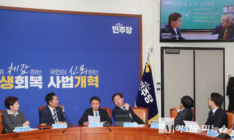 「M포토」 전한길 유튜브 보여주며 발언하는 한병도