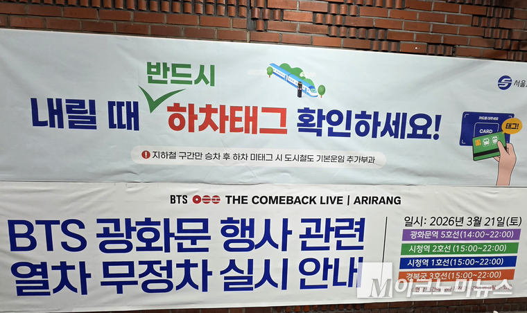 서울시는 이날 9시를 기해 광화문역(5호선)은 오후 2~10시, 경복궁역(3호선)과 시청역(1·2호선)은 오후 3~10시 무정차 통과한다고 공지했다. 공연이 끝난 오후 10시부터는 세 역에서 지하철 이용이 가능해진다.