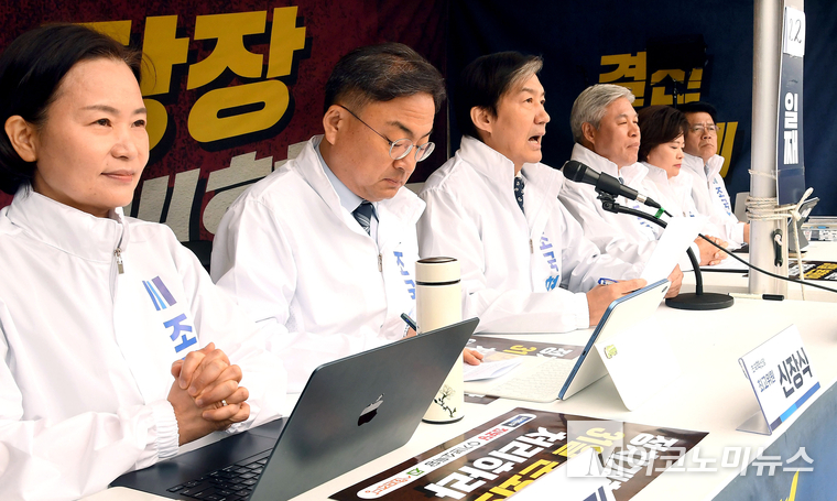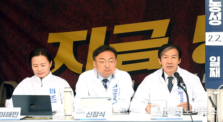「M포토」 천막농성 22일 차, 최고위서 발언하는 조국