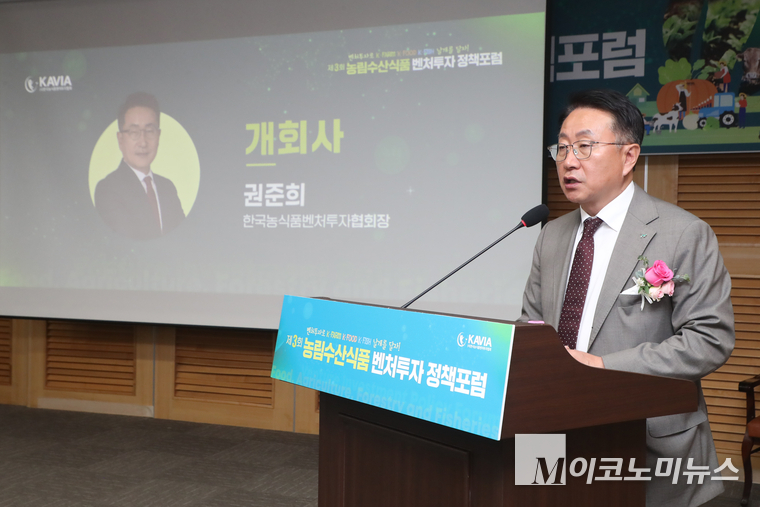 「M포토」 ‘농수산식품산업 벤처투자 정책포럼’ 개회사하는 권준희 회장