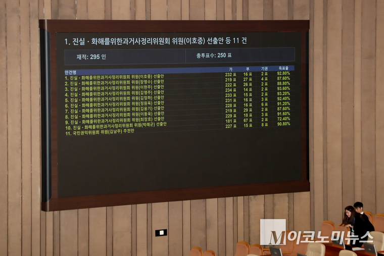 국회는 이날 오후 제434회국회(임시회) 제434-7차 본회의에서 진화위 상임위원 2명, 비상임위원 8명과 국민권익위원회 비상임위원 1명에 대한 선출안을 가결시켰다.