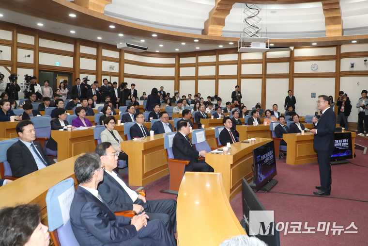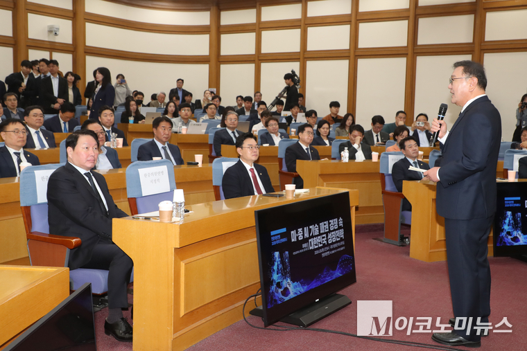 「M포토」 인사말하는 김태년 한중의원연맹 회장