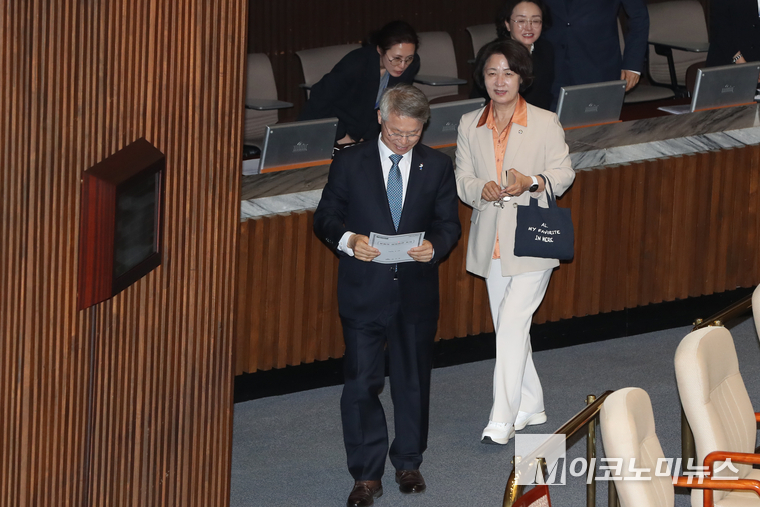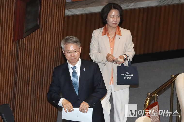 「M포토」 본회의 참석한 추미애-민형배