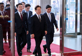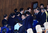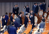 「M포토」 민주당 의원들의 환영 받으며 국회 본회의장 들어서는 이재명 대통령
