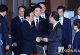 「M포토」 송언석 국민의힘 원내대표와 인사하는 이재명 대통령