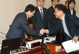 「M포토」 야당 의원들과 인사하는 권칠승 신임 행안위원장