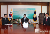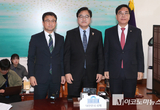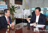 [M포토] 어기구 농해수위 위원장을 만나 담소 나누는 정재현 전 의장