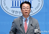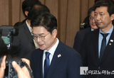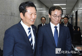 「M포토」 국회 소통관 기자회견 후 이동하는 정원오