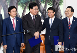 「M포토」 기자회견 후 이동하는 서삼석·김영호·허성무