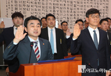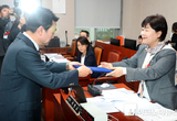「M포토」 서영교 위원장에 선서문 전달하는 안규백 장관