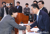 「M포토」 서영교 위원장과 악수하는 정성호 법무 장관