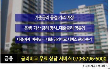 주택담보대출금리비교 사이트 ‘뱅크-몰’( www.bank-m.co.kr )은 누구나 사이트에 방문하면 은행별 최저금리 확인이 가능하도록 시중은행의 대출금리를 공시하고 있으며, 금융전문가를 통해 무료로 대출 진단이나 대출 상담을 받을 수 있어 인기를 끌고 있다.