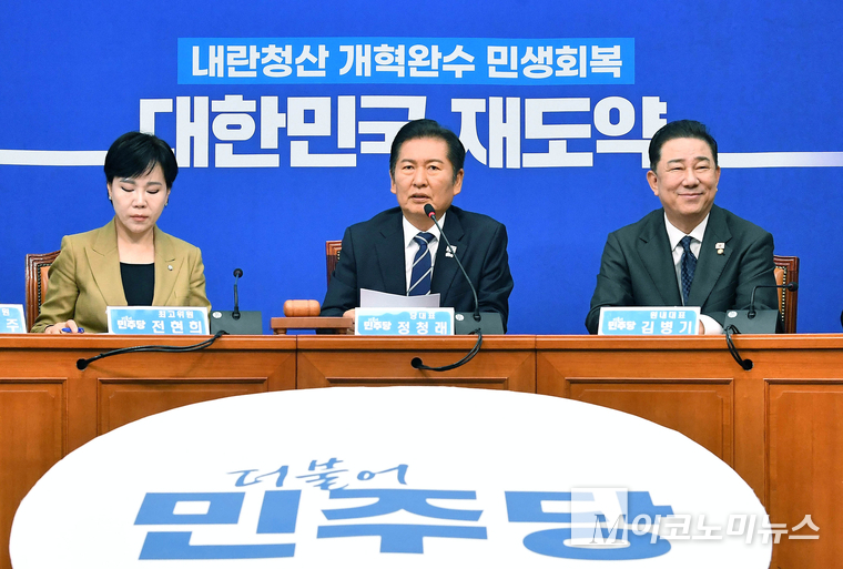 정청래 더불어민주당 대표가 10일 국회 본관에서 열린 최고위원회의에서 이재명 정부 첫 국정감사에 대해 “이번 국감은 윤석열 내란 잔재 청산의 국감”이라고 했다.
