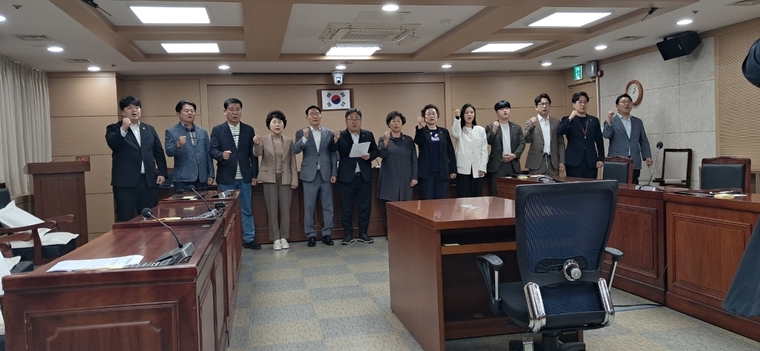 박현수 대표의원과 기자회견에 참여한 의원들은 먼저 "특검 수사 과정에서 스스로 생을 마감한 고(故) 정희철 면장께 깊은 애도의 뜻을 표하며 유족들께 진심으로 위로의 말씀을 드린다"고 고개를 숙였다.