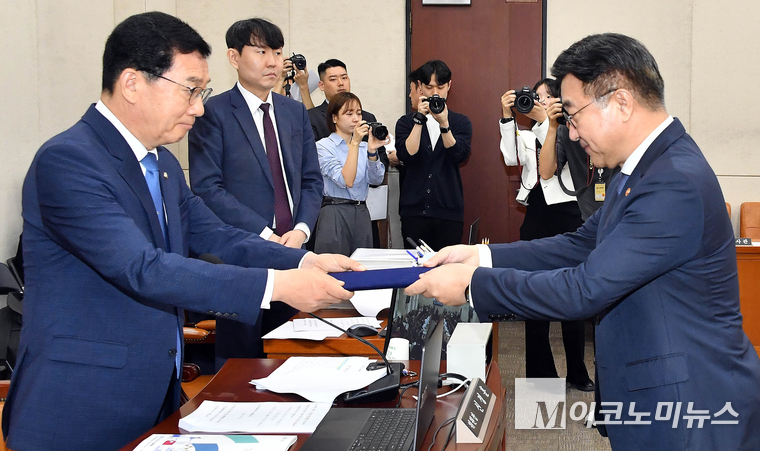 「M포토」 행안위 국감서 증인 선서하는 윤호중 장관