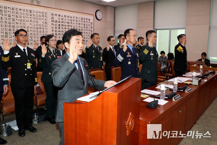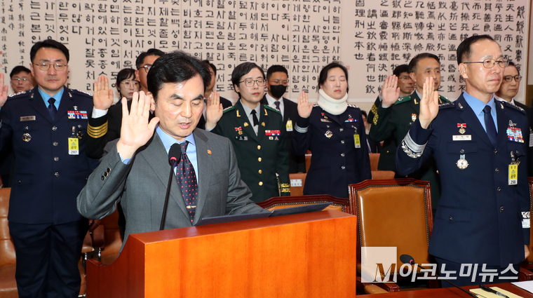 「M포토」 증인 선서하는 안규백 국방부 장관