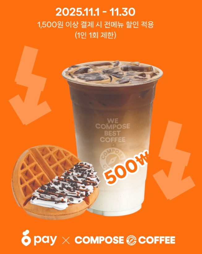 컴포즈커피는 국내 중고거래 플랫폼 당근의 간편결제 서비스 ‘당근페이’와 함께 11월 한 달간 특별 할인 프로모션을 진행한다고 3일 밝혔다.