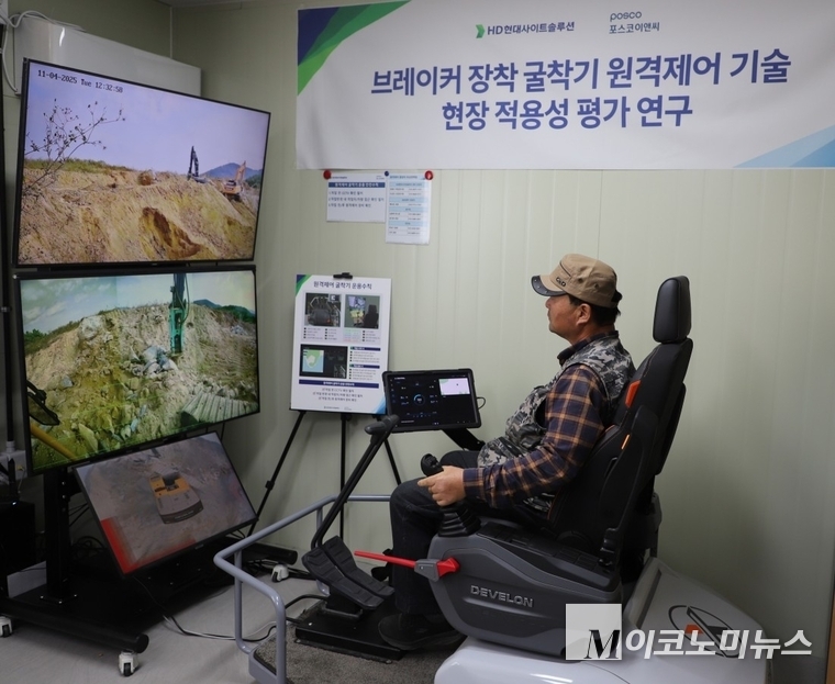 HD현대사이트솔루션이 자체 개발한 원격제어 굴착기와 조종시스템을 제공하고 포스코이앤씨는 기술 운영 프로세스 설계 및 통신 인프라 구축해 경제성 분석을 담당했다. 양사는 협업을 통해 인력난이 심화된 건설산업에 원격기술을 접목해 차세대 스마트건설 생태계 구축에 나서고 있다.