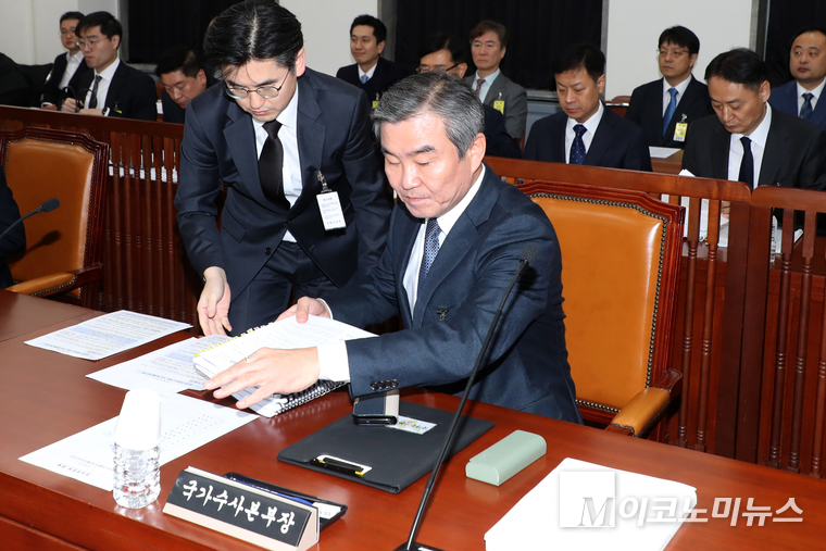 「M포토」 정보위 국감 출석하는 경찰청장 직무대행과 경찰청 국가수사본부장