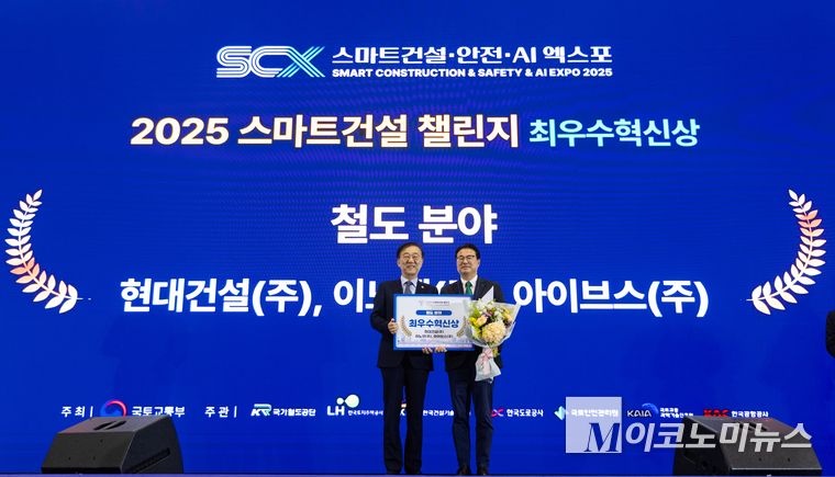 현대건설은 지난 5일 경기도 고양 킨텍스(KINTEX)에서 열린 ‘2025 스마트건설 챌린지’ 시상식에서 건설정보모델링(BIM)과 철도 분야에서 최우수 혁신상, 단지‧주택 분야에서 혁신상 등 총 3개의 상을 석권했다고 7일 밝혔다.