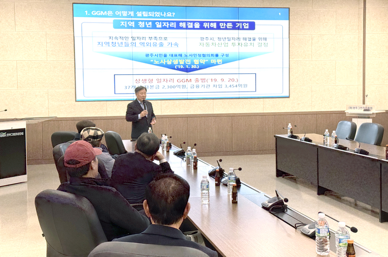 광주는 자동차 생산 공장이 있어서 모든 대학이 자동차 학과를 개설하고 있는데 전문대까지 합하면 대략 11개 학교에 학과가 있습니다. 이들이 대학을 졸업하면 GGM 등에 지원하고, 여기서 어느 정도 경력을 쌓으면 기아 현대차 등에 경력직으로 들어갑니다. 이런 면에서 본다면 GGM은 인재 육성의 역할도 하고 있다고 봐야죠. 우리 진흥원만 해도 약 40%의 직원이 2년 계약을 다 채우지 못하고 다른 데로 스카웃됩니다. 장비를 다루는 직원들의 연봉이 꽤 높습니다. 그런 면에서 우리 진흥원은 인재 양성의 산실이라고 해도 과언이 아니죠.