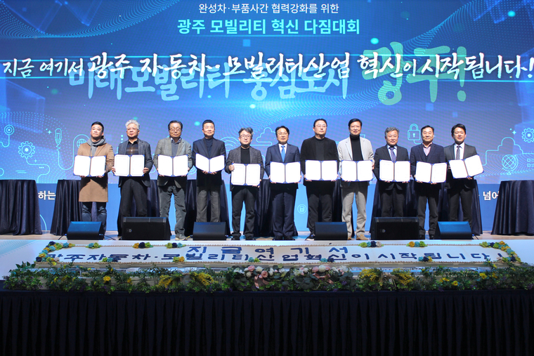 우리 광주는 울산 다음으로 자동차 넘버2 도시입니다. 광주는 울산보다 훨씬 탄탄한 기술과 산업 생태계인 미래 도시가 될 겁니다. 전 세계는 지금 전기차 시장 규모가 시속 50km로 달리고 있습니다. 앞에서도 언급했다시피 우리는 시속 20km로 가고 있고요. 경쟁력 변화의 속도가 느립니다. 공급자들의 이익 극대화 측면과 충전 인프라가 구축에 있어서 부족한 면도 있지요. 여기에 최근 국내에서는 전기차 캐즘(일시적 수요 침체) 이 생기면서 수요 단절이 잠깐 생겼습니다만, 올 하반기부터 전기차 시장이 빠르게 열리고 있지 않습니까?