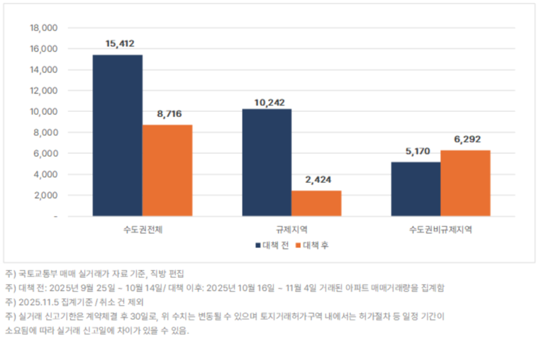 이어 “정부의 추가 조치가 이어질 가능성도 남아있는 만큼, 단기적으로는 거래 위축과 수요 이동이 공존하는 혼조세가 지속될 전망”이라고 덧붙였다.