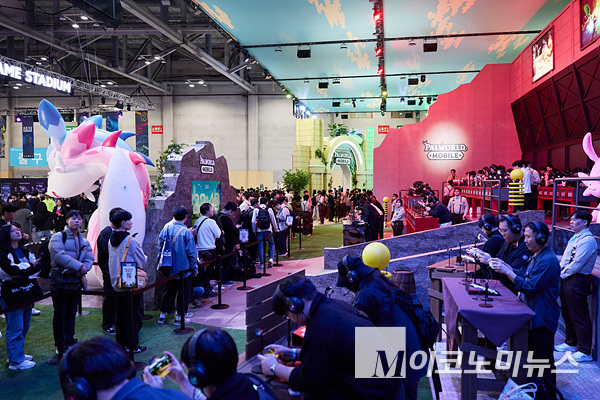 올해 크래프톤은 일본 게임 개발사 포켓페어(Pocketpair)의 ‘팰월드(Palworld)’ 지식재산권(IP)을 기반으로 개발 중인 신작 ‘팰월드 모바일(Palworld Mobile)’을 중심으로 부스를 구성했다. 크래프톤 부스에는 개막 직후부터 팰월드 모바일을 시연하기 위해 많은 게이머들이 몰렸다. 시연존 앞에는 긴 대기 행렬이 형성됐고, 최대 2시간 30분 이상 기다릴 정도로 관심이 집중됐다. 게임을 체험한 관람객들은 ‘원작의 재미를 모바일에서도 그대로 느낄 수 있었다’, ‘귀여운 팰들과 함께 오픈월드를 탐험하며 전투와 제작을 하는 것이 즐거웠다’, ‘스킬을 활용한 전투가 재미있고 몰입감 있었다’ 등 후기를 남겼다.