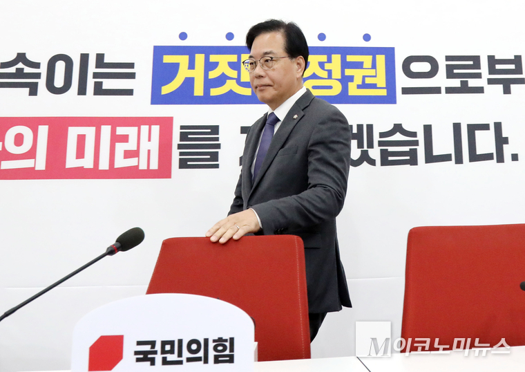 「M포토」 기자간담회 참석하는 송언석 원내대표
