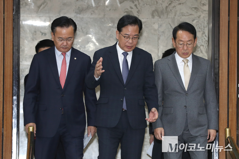 「M포토」 원내대책회의 참석하는 송언석 원내대표와 원내지도부