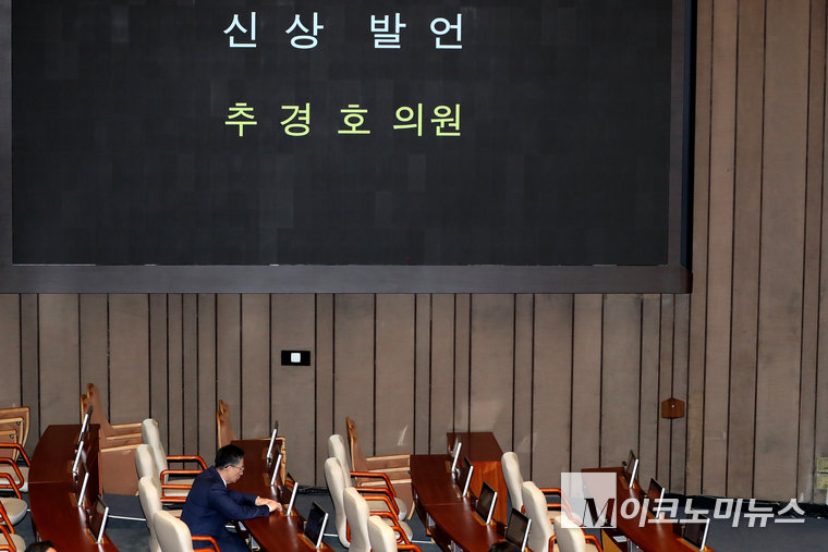 반면, 국민의힘은 국회 로텐더홀에서 추 의원 ‘체포동의안’ 처리 규탄대회를 열었다.