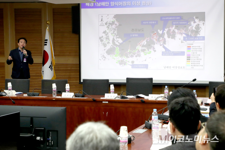 토론회 첫 발제에 나선 김형철 국립수산과학원 수산재해대응팀장은 "수산 재해로 인해 어업인과 수산업자들에 미치는 영향이 크다”며 "김 황백화 현상 등 양식업 등의 피해를 최소화하고 사전 리스크를 관리해야 하는 데 이 부분이 많이 미흡하다"고 문제를 제기했다.