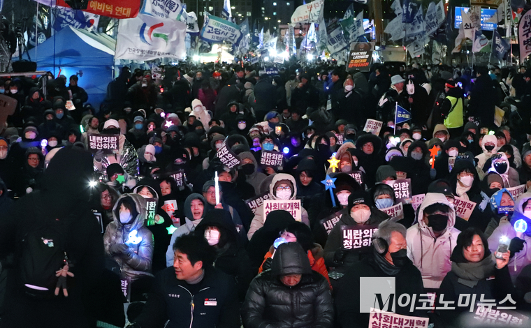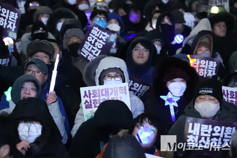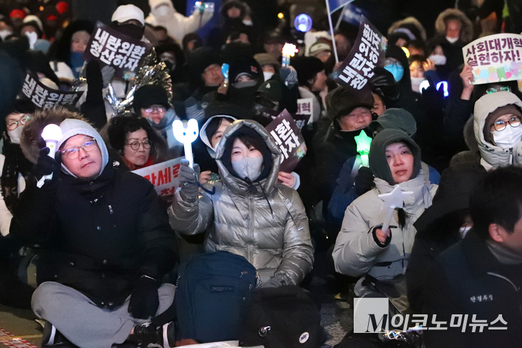 「M포토」 계엄 1년, 응원봉 들고 국회 앞에 모인 시민들