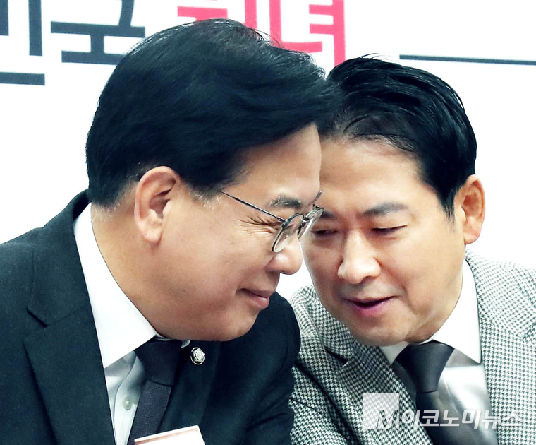 「M포토」 최고위서 대화하는 장동혁·송언석