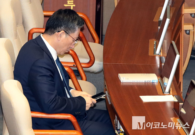 「M포토」 무제한토론에 자리 지키는 정성호 법무부 장관