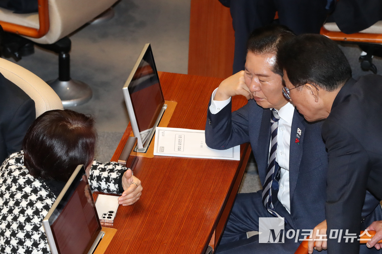 「M포토」 의원들과 대화하는 정청래 대표