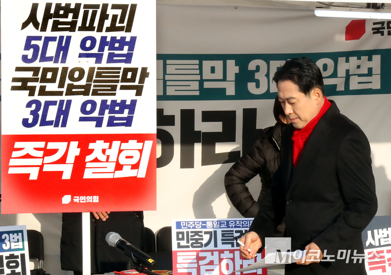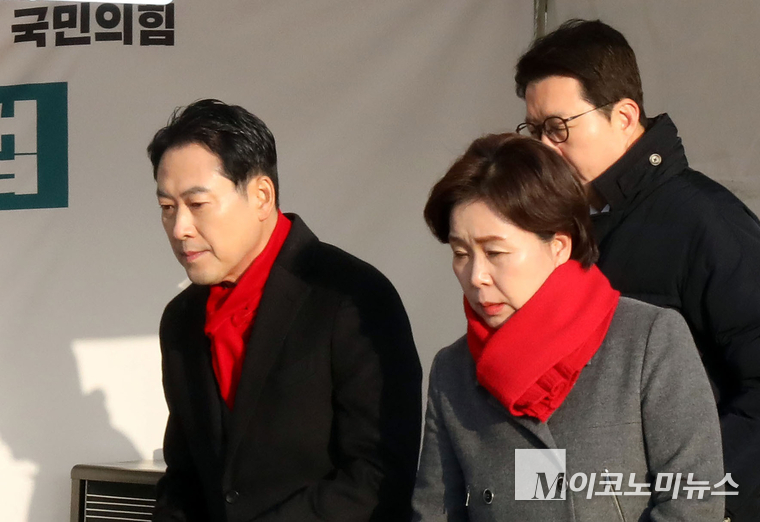 「M포토」 천막 최고위 참석하는 국민의힘 지도부