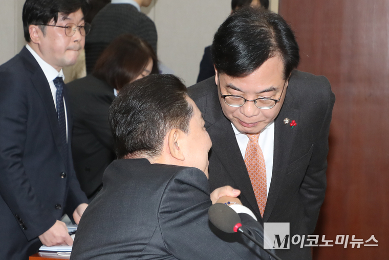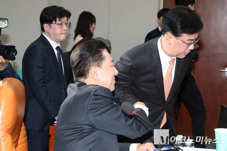 「M포토」 국회 운영위서 인사하는 김병기·송언석