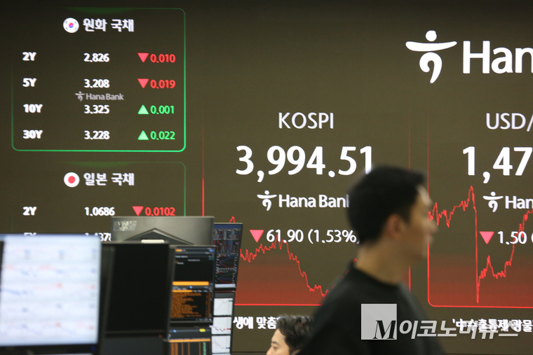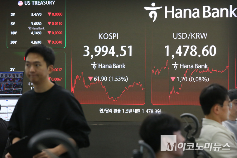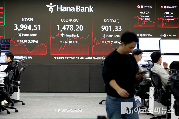 「M포토」 코스피 4000선 아래 마감...달러·원 환율 1478원대