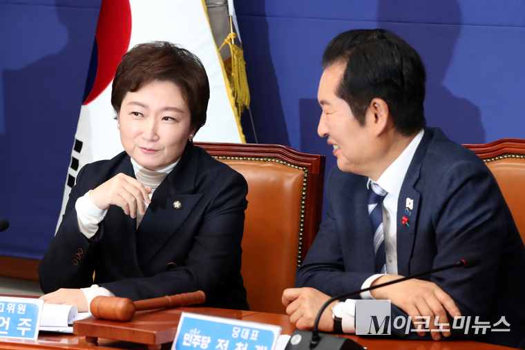 「M포토」 이언주 최고위원과 대화하는 정청래