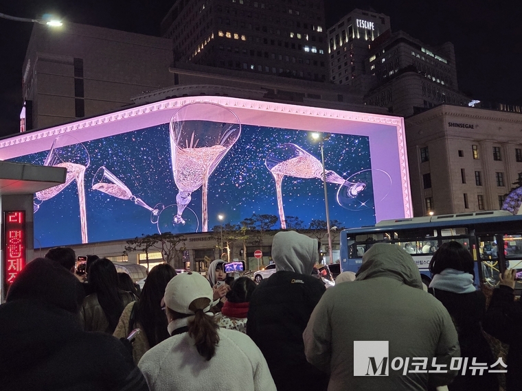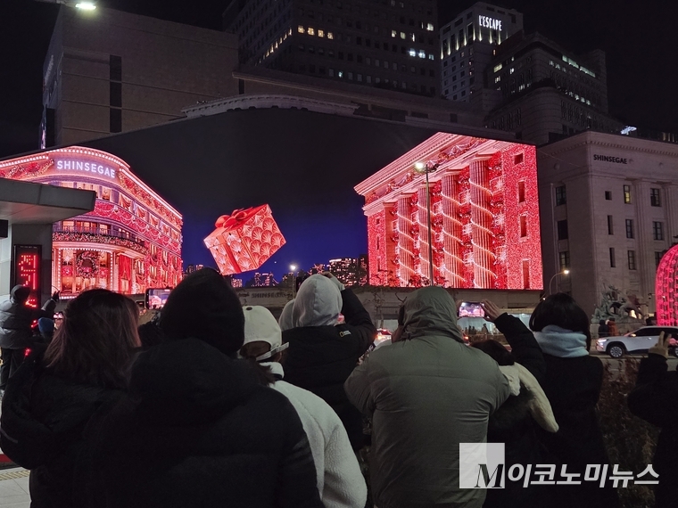 신세계 백회점 본점 외관에 설치된 신세계 스퀘어 전광판에는 화려한 크리스마스 영상이 상영되며 시민들의 발길을 멈추게 했다. 화려한 영상이 바뀔 때마다 시민들의 입에선 함성이 터져나왔다.