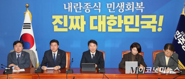 「M포토」 원내대책회의에서 발언하는 문진석 원내대표 직무대행