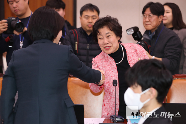 「M포토」 추미애 법사위 위원장과 인사하는 조배숙 의원