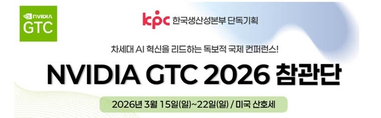 한국생산성본부(KPC)가 오는 3월 16일~20일 미국 캘리포니아주 새너제이에서 개최되는 NVIDIA GTC 2026의 참관단을 모집한다.