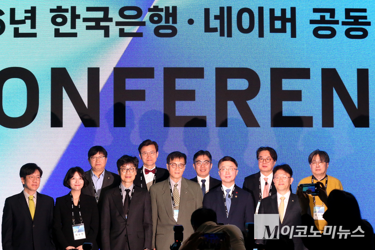 「M포토」 AX 콘퍼런스에서 기념 촬영하는 이창용·이해진·최수연