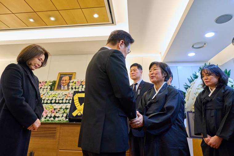이재명 대통령 내외는 27일(어제) 오후 6시쯤 이해찬 전 국무총리(민주평화통일자문회의 수석부의장, 더불어민주당 상임고문)의 빈소를 찾아 유족을 위로하고 영정에 직접 국민훈장 무궁화장을 추서했다.