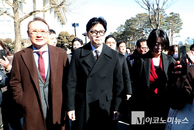 「M포토」 ‘제명’ 관련 기자회견 위해 국회 찾은 한동훈
