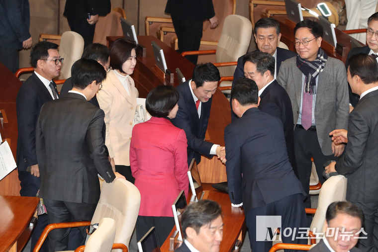 「M포토」 국힘 의원들의 환영 받는 장동혁